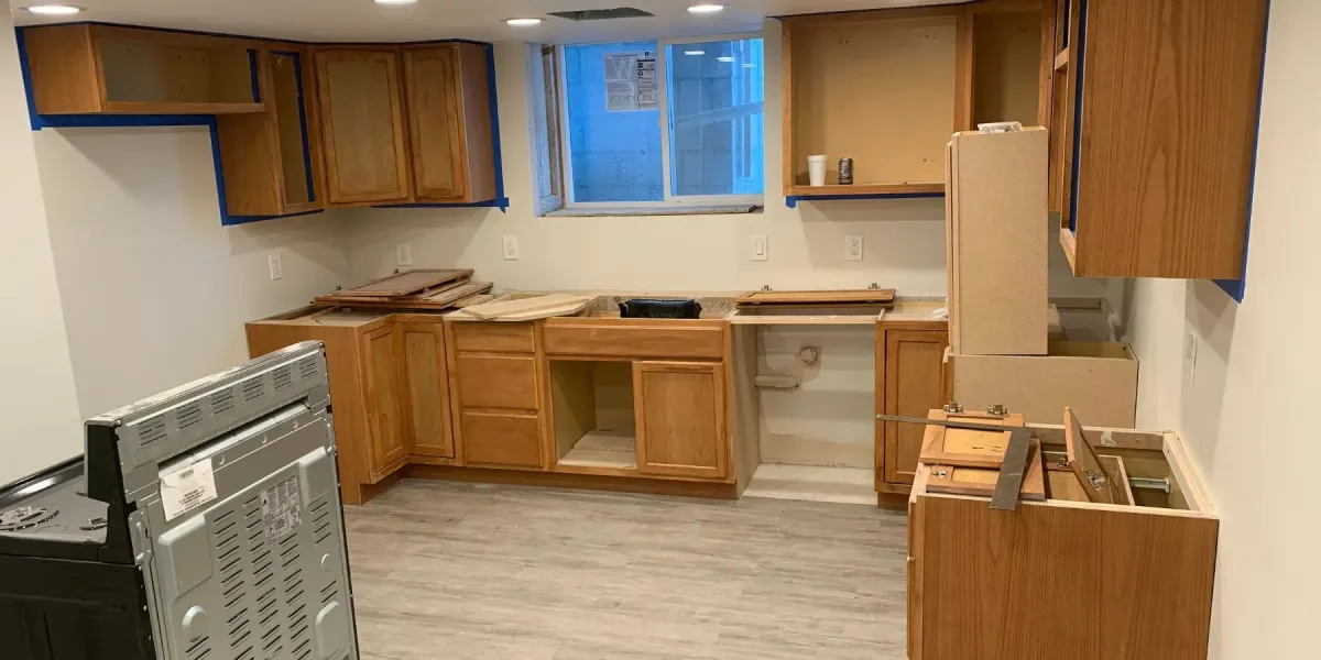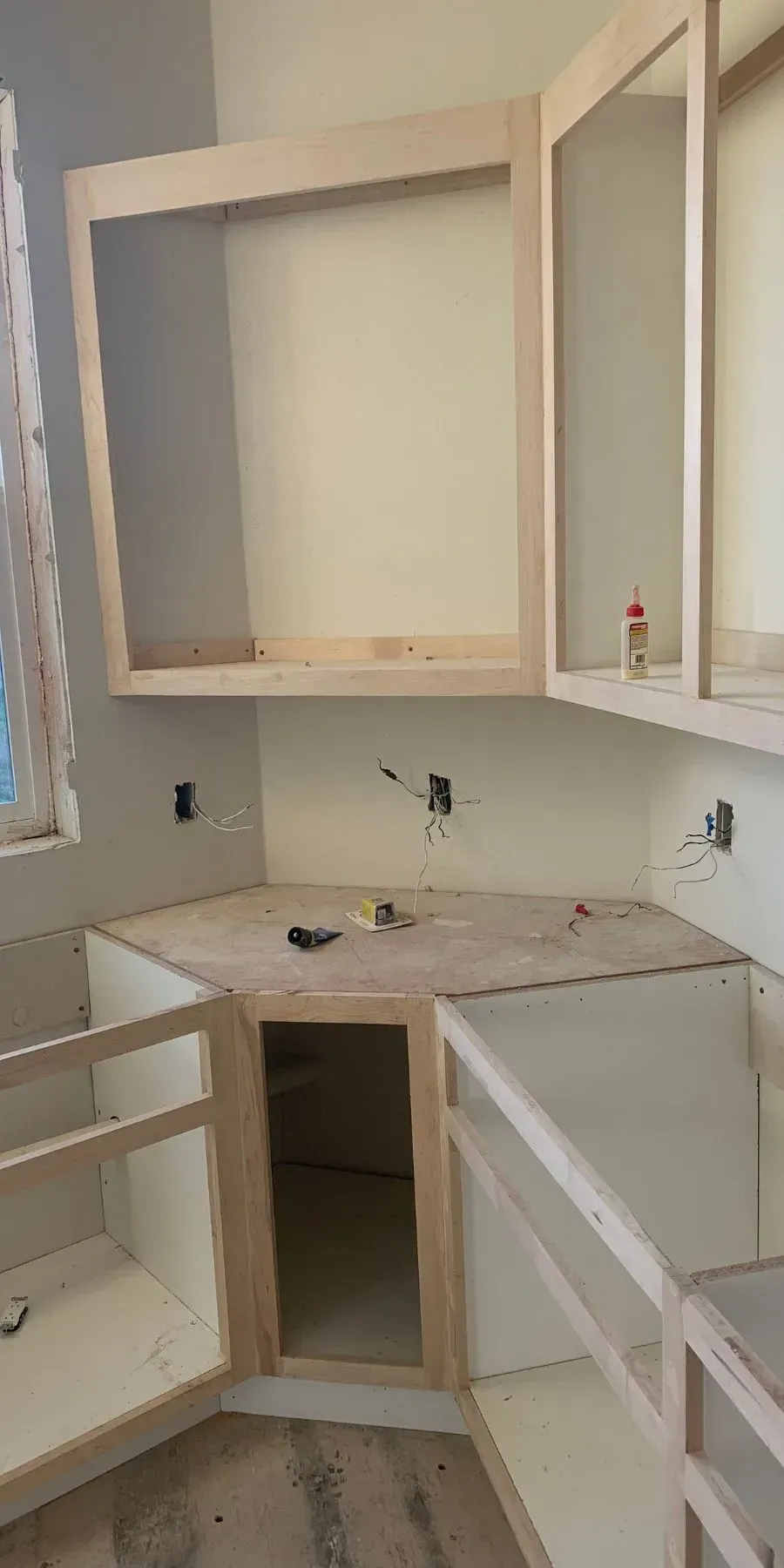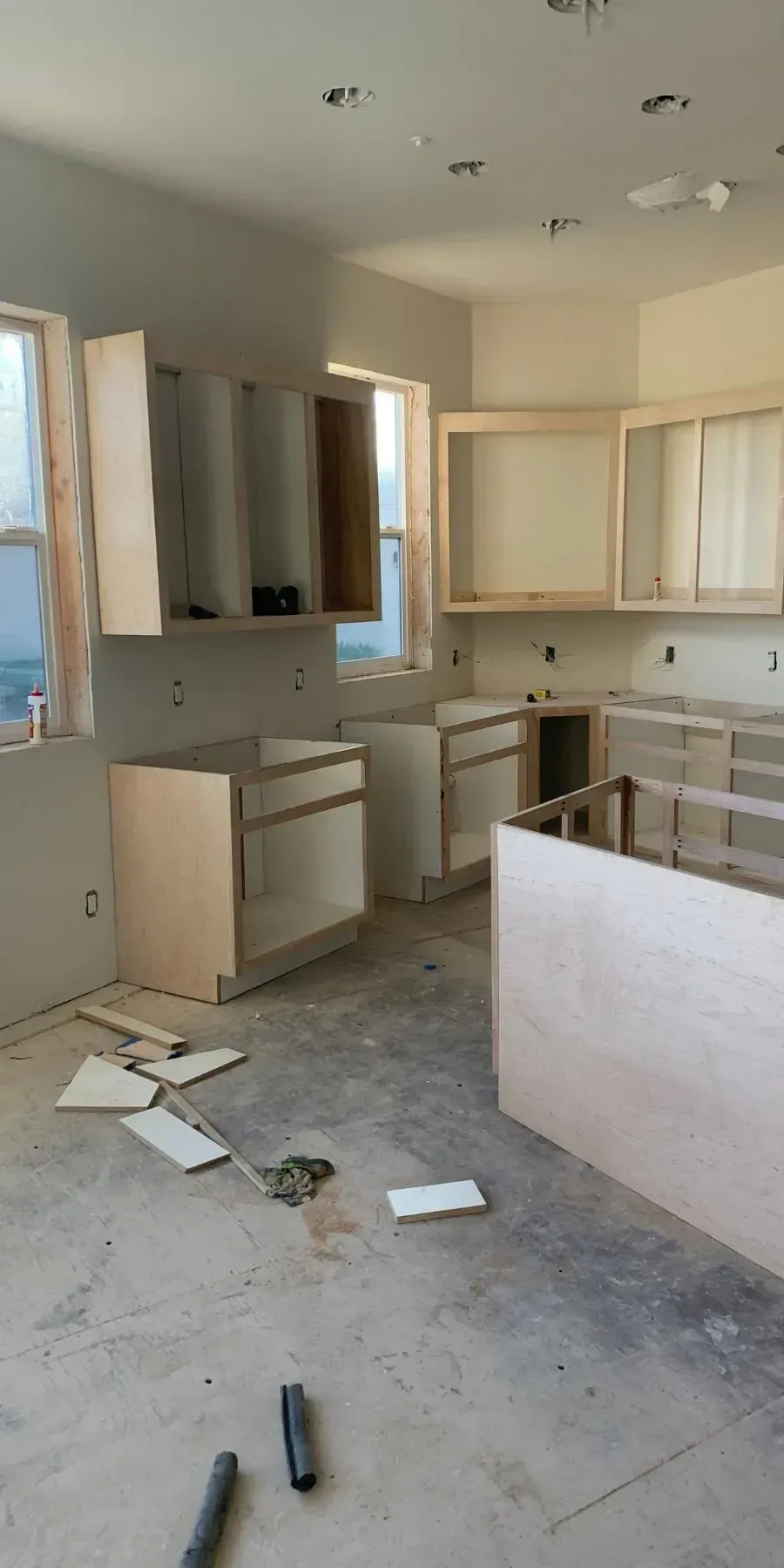We built and installed new kitchen cabinets from the ground up, starting with custom frames and precise layout to maximize space and function. Once assembled, the cabinets were fitted with solid wood doors and drawers, creating a clean, durable, and timeless look. The finished installation provides ample storage and a polished appearance, transforming the kitchen into a fully functional and inviting space.